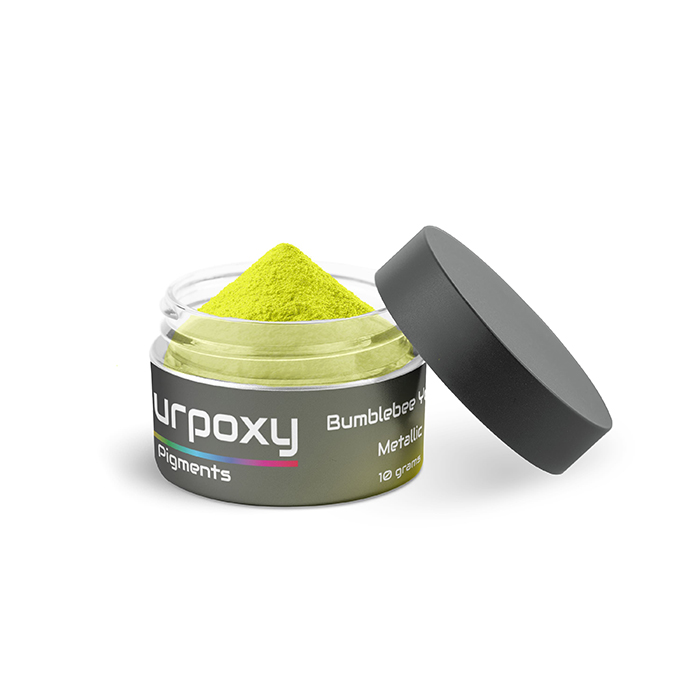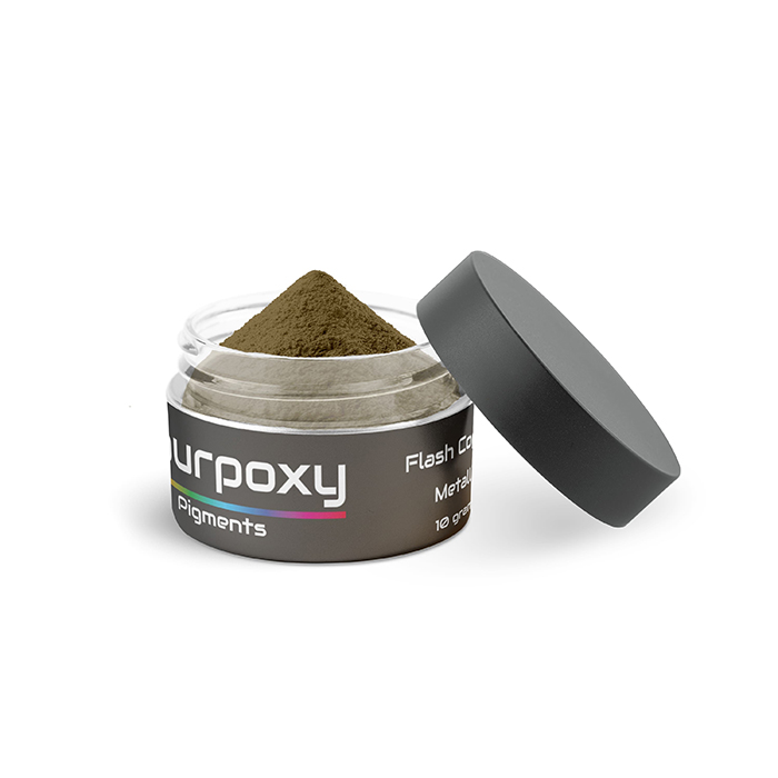 The metallic epoxy pigments provide a complete coloration by adding 1% to the epoxy resin. Of course, you can determine this yourself; less is possible, and adding more than 1% gives a different result. It ensures that your project gets a unique look every time. See how to work with Pourpoxy pigments in our guide.