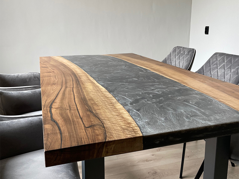 An epoxy river table is a unique piece of furniture where epoxy resin is used to create a beautiful river-like opening in the tabletop. Wooden planks are placed on both sides of the opening, creating the appearance of a flowing river running through the table. The epoxy resin is then poured and cured, resulting in a glossy and durable surface. Epoxy river tables combine the natural beauty of wood with the modern look of epoxy, making them a focal point in any interior. The result is a masterpiece that seamlessly blends functionality and art.