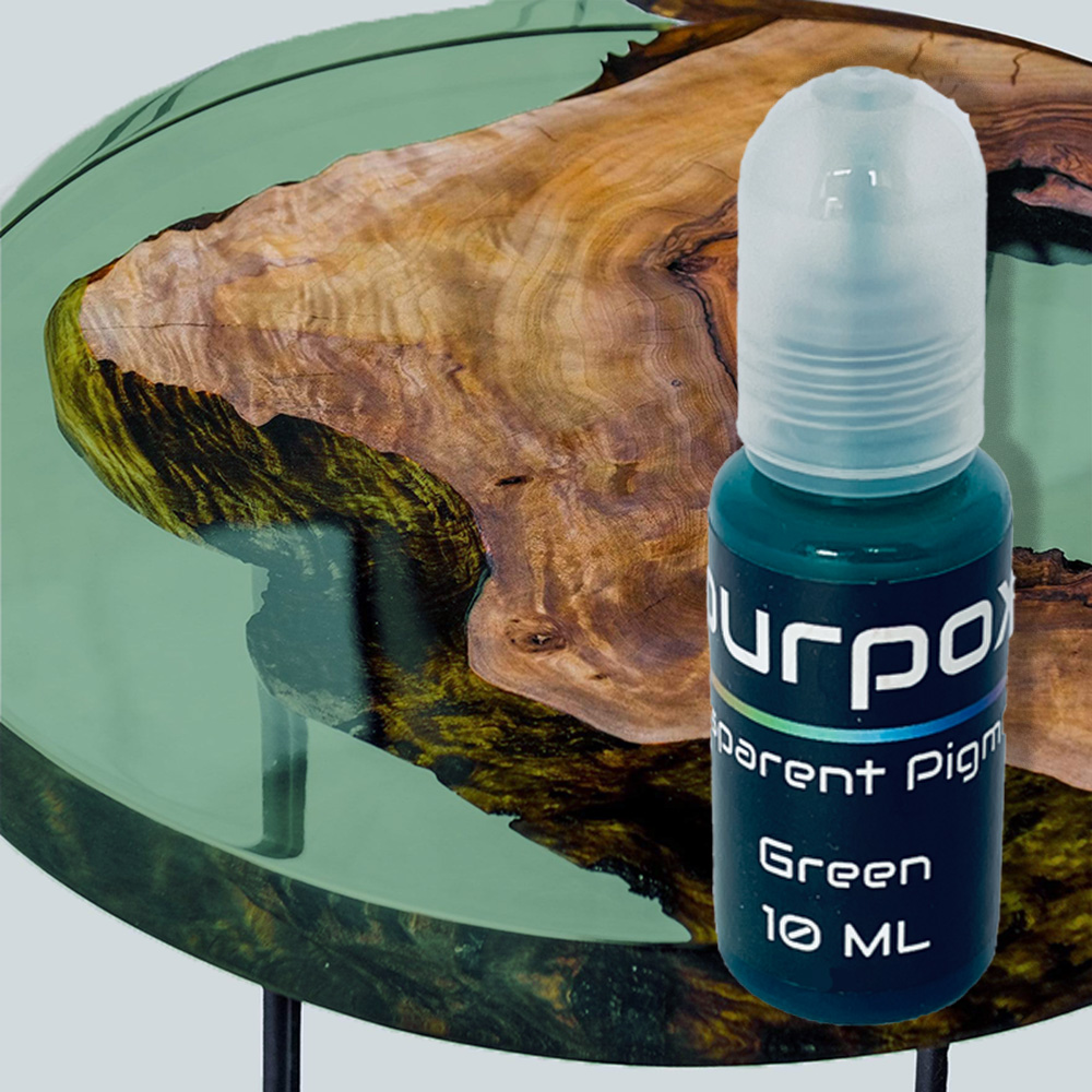 This transparent pigments set from PourPoxy ensures that you have all colors at once. Combine colors to create new ones. The guide on Pourpoxy.com is very useful for this. This set of pigments provides a translucent coloring of your epoxy. The dosage in relation to the epoxy is low, making it very economical to use.